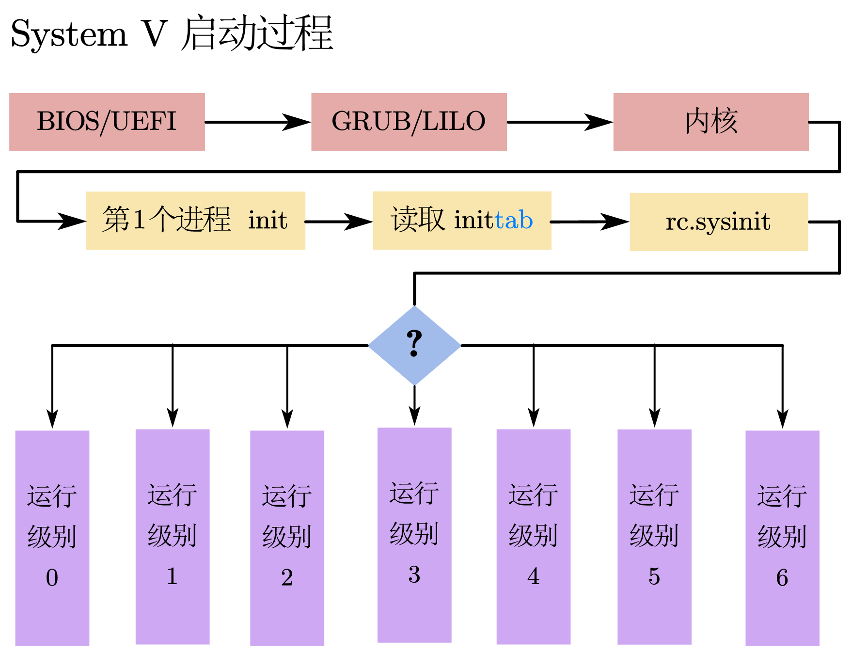 systemVinit 用 runlevel[运行级别] 来定义预先定义的运行级别。