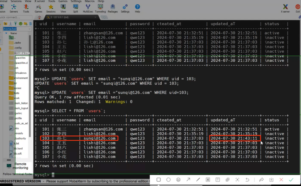 (103,"孙七","孙七@126.com","qwe123","inactive"),