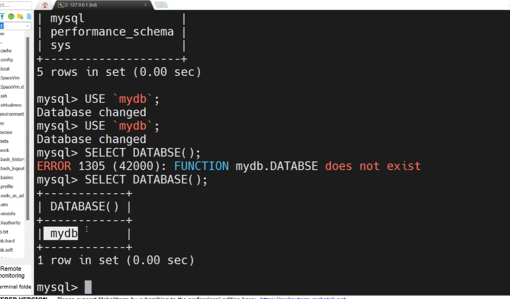 注:根目录依然是 mysql>; 另:没有 选择数据表