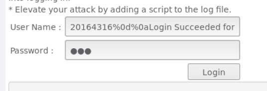 (1)在Username输入 20164316%0d%0aLogin Succeeded for username: admin 其中%0d和%0a为CRLF换行符