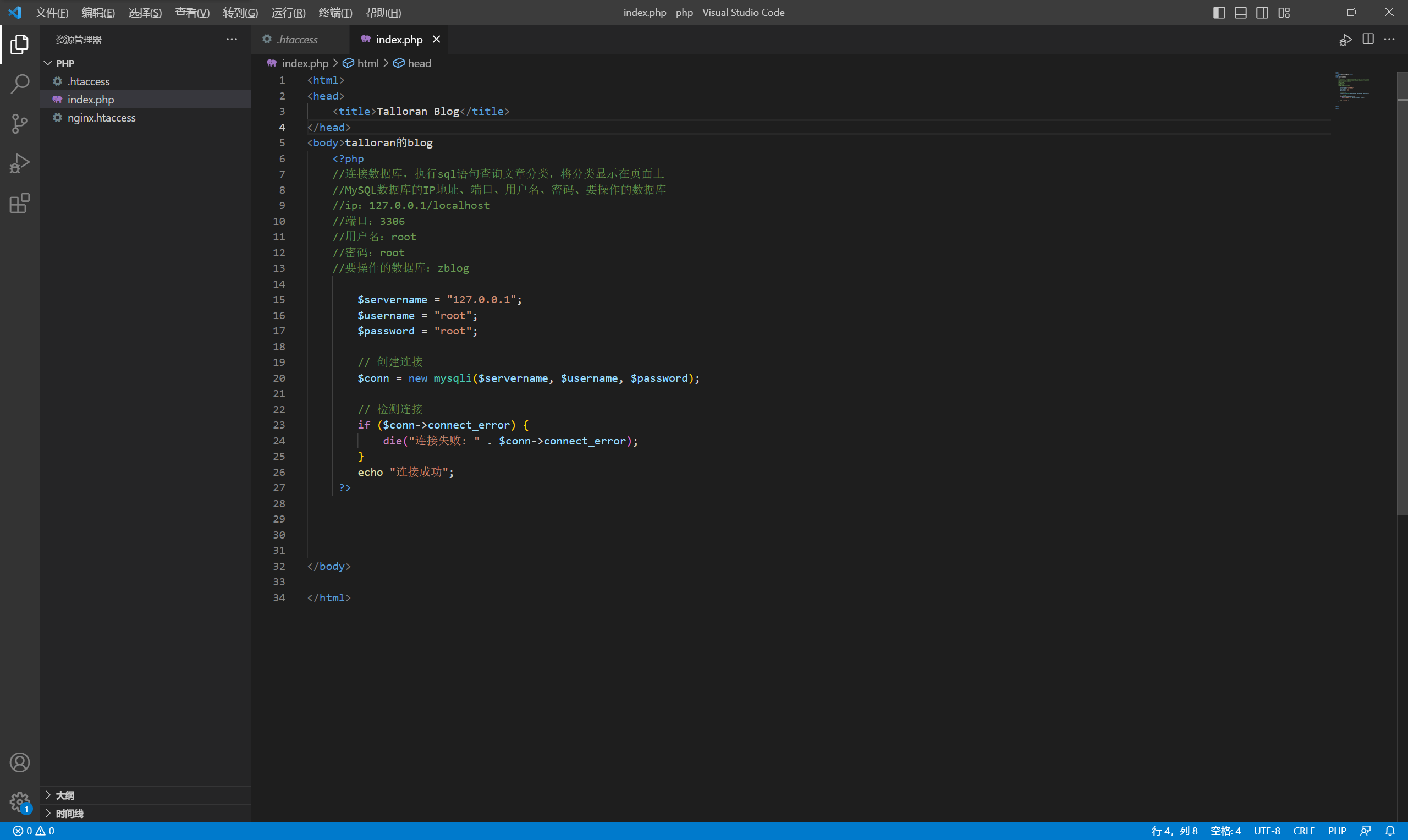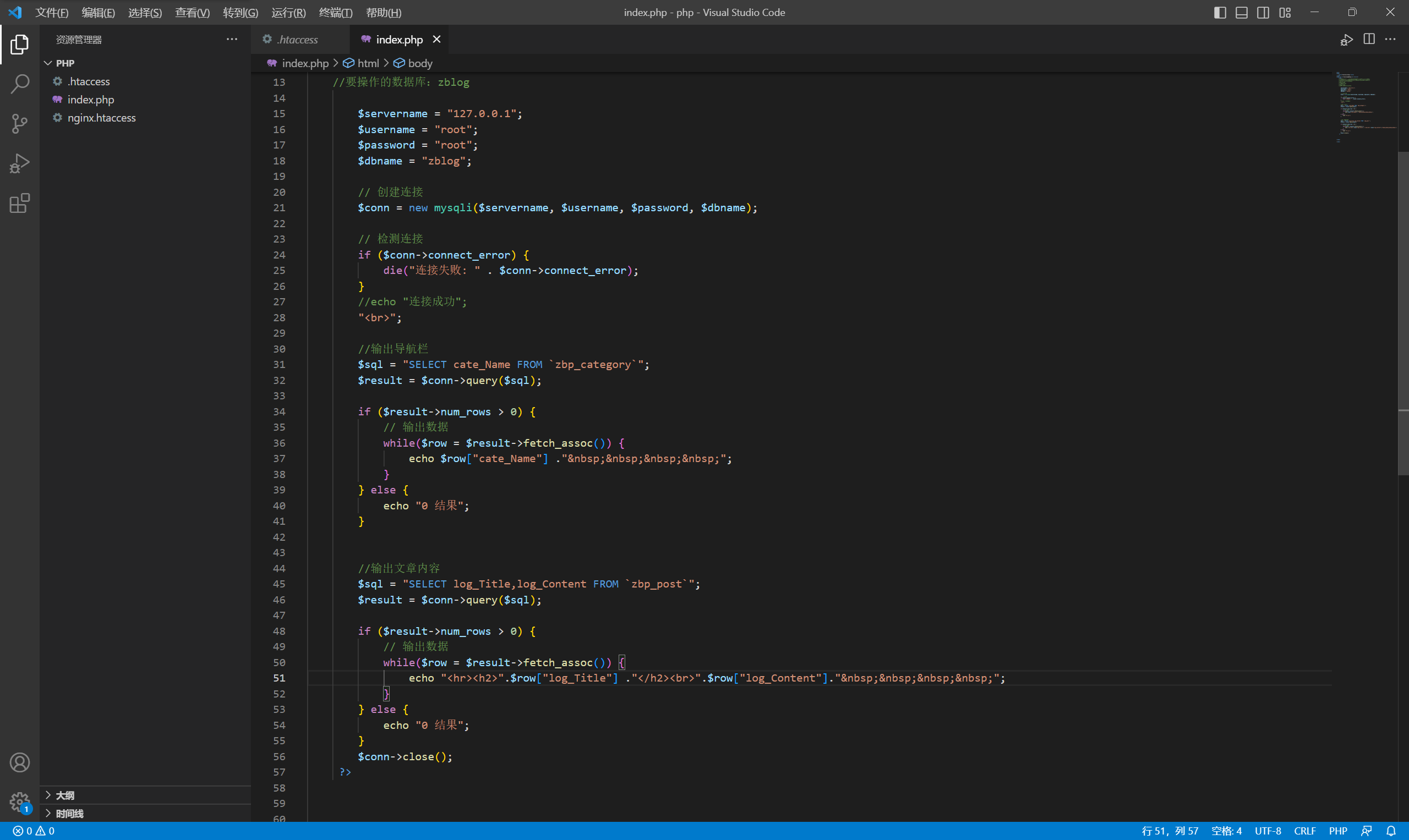 1.输入代码,在vscode中使用php连接自己的数据库