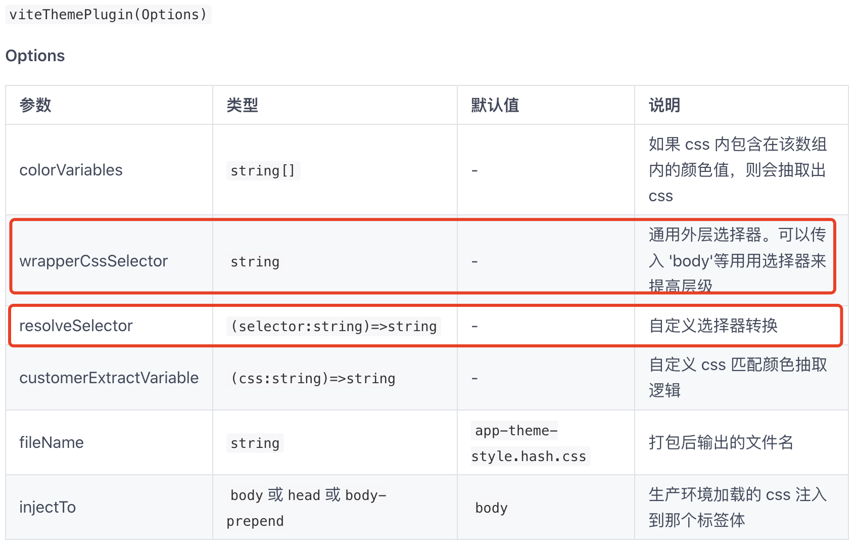 根据文档,尝试了wrapperCssSelector,未能编译出想要的选择器,翻进源码发现,wrapperCssSelector的生效需要判断resolveSelector函数,没有resolveSelector函数时,默认在暗黑主题属性选择器前添加wrapperCssSelector,因此删除了resolveSelector函数,只有wrapperCssSelector情况下再次编译,仍然没有编译出想要的选择器。