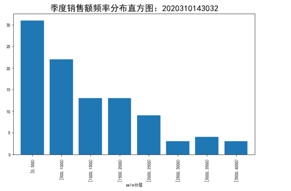 plt.title('季度销售额频率分布直方图:2020310143032',fontsize=20)