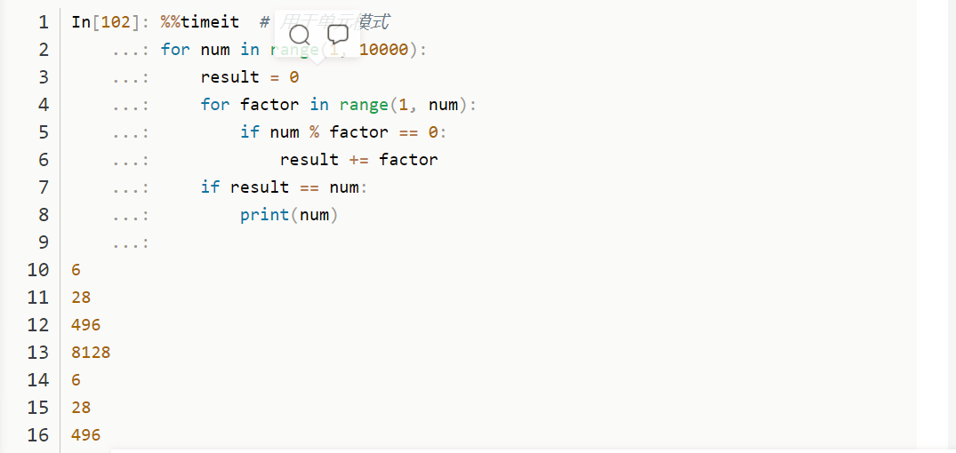 %%timeit: 在单元模式下,执行代码块若干次,取最佳结果。