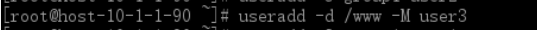 用户user3,指定登录目录为/www,不创建自家用户目录(-M)