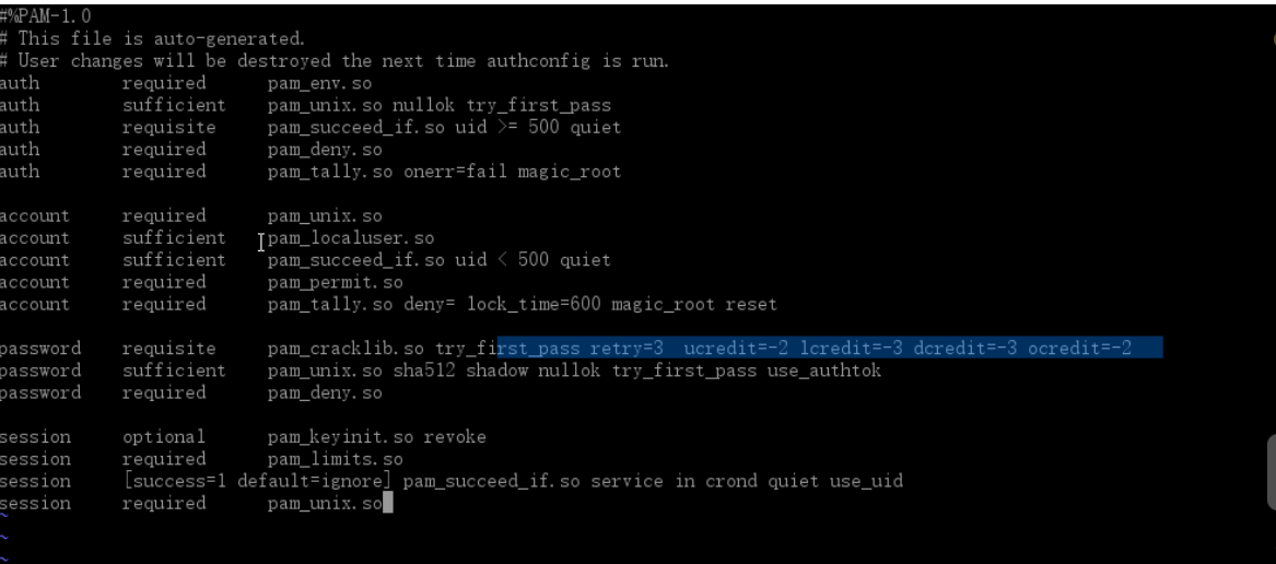 dcredit=N: N >= 0:密码中最多有多少个数字;N < 0密码中最少有多少个数字.
