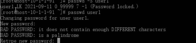 在创建完用户user1后,没给用户passwd口令时,账户默认为禁用状态: