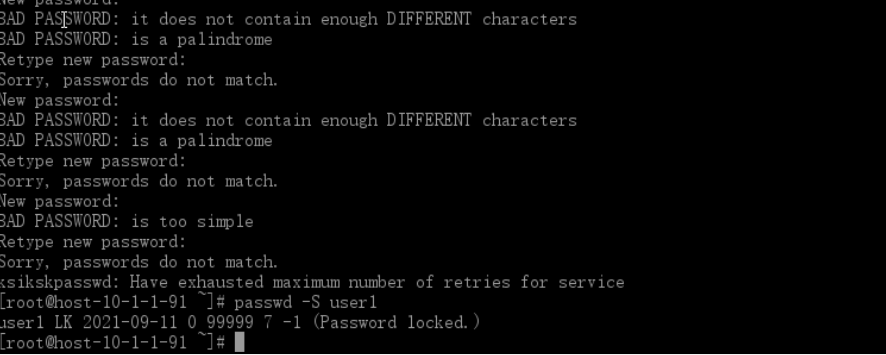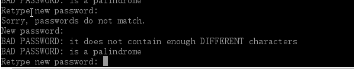 登录(su)普通用户使用passwd程序更新密码,如果输入的密码不符合要求,将不能修改
