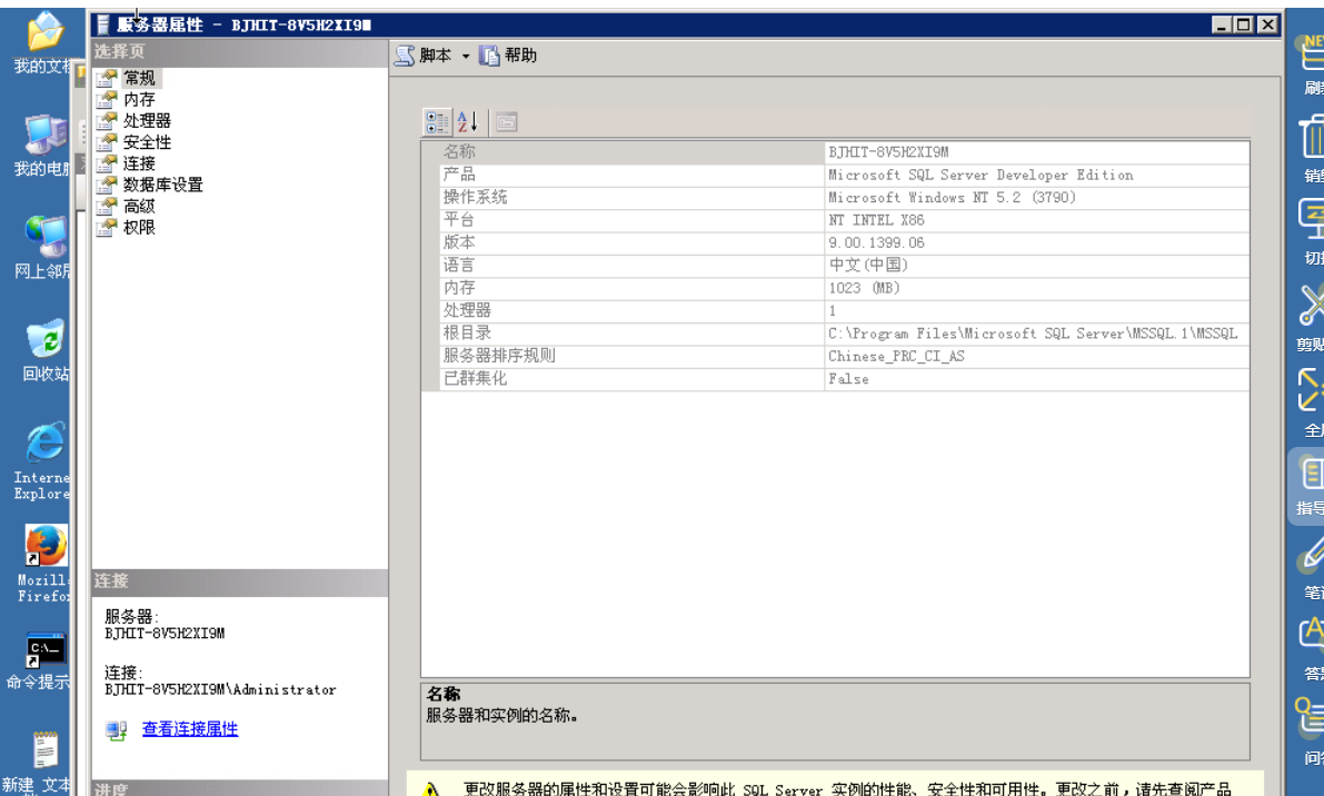 ④在“对象资源管理器”中,右击服务器,然后单击“属性”。
