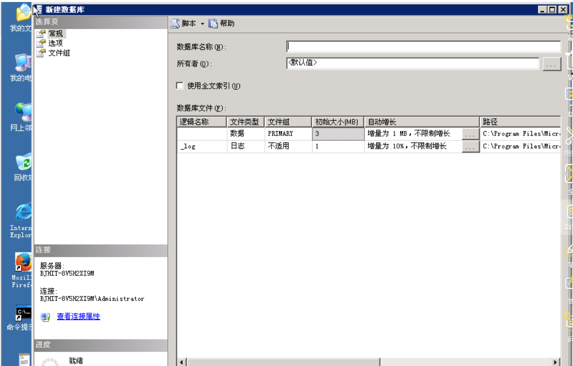 ②在SQL Server Management Studio中,右击数据库,选择新建数据库