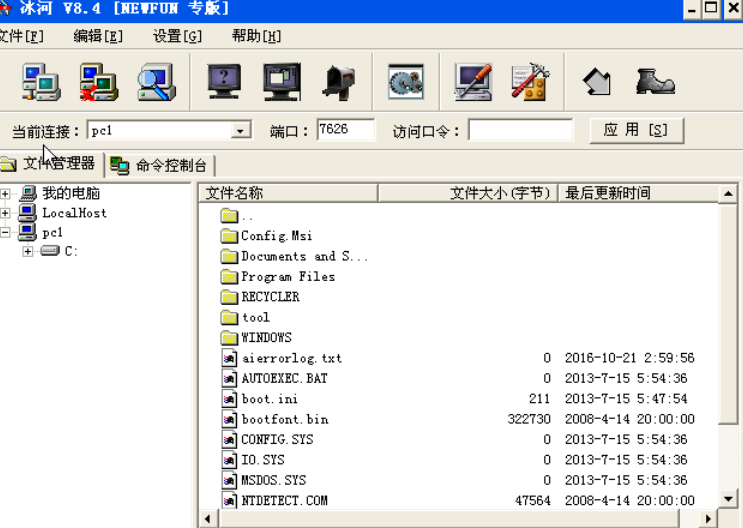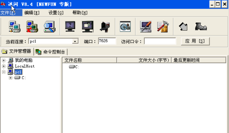 单击添加的主机(PC1)出现如图6添加主机界面,如果连接成功,则会显示服务器端主机上的盘符如图7服务器端主机盘符。这时我们就可以像操作自己的电脑一样操作远程目标电脑.