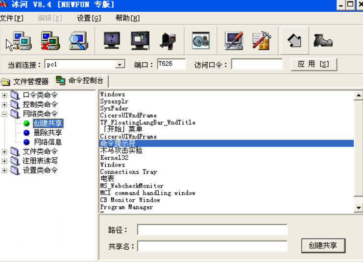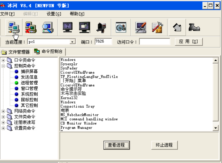 “窗口管理”:这个功能可以使远程主机上的窗口进行刷新,最大化,最小化,激活,隐藏等操作。