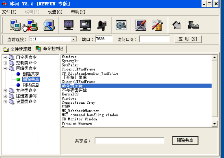 “删除共享”:在远程主机上删除某个特定的共享