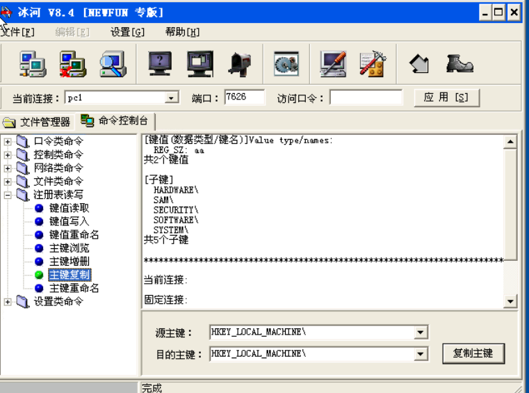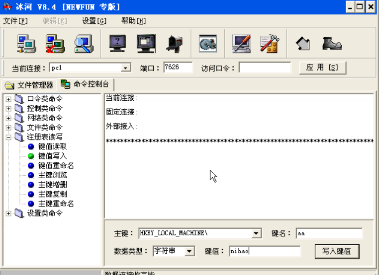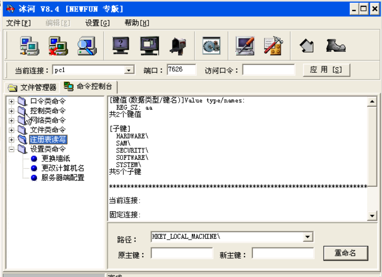 点击“命令控制台”,点击“注册表读写”前面的“+”即可展开“注册表读写”命令,如图注册表读写。