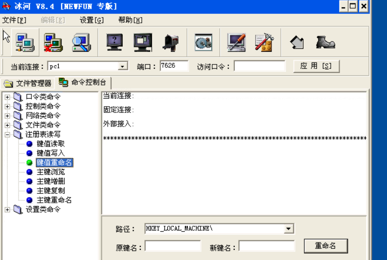 注册表读写提供了“键值读取”、“键值写入”、“键值重命名”、“主键浏览”、“主键增删”、“主键复制”的功能。