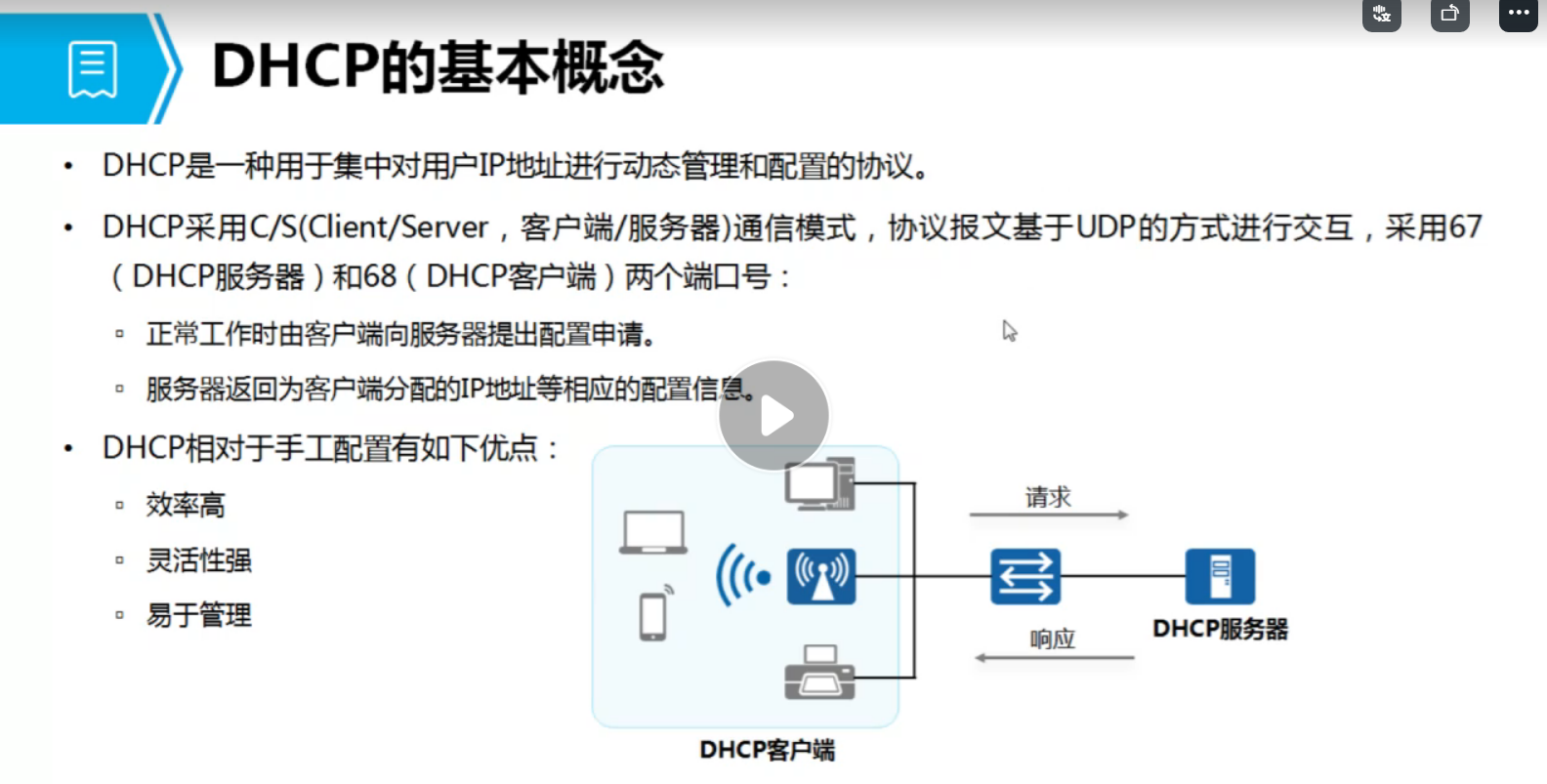 DHCP:采用C/S 通信模式,协议报文基于UDP的方式进行交互