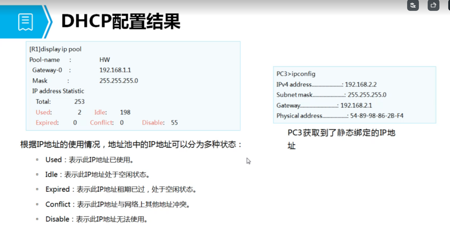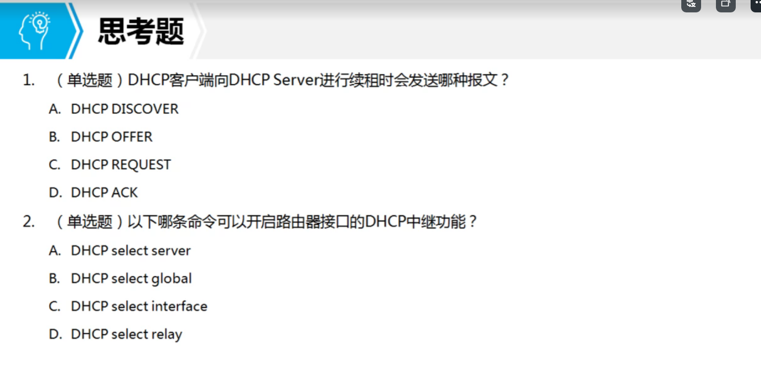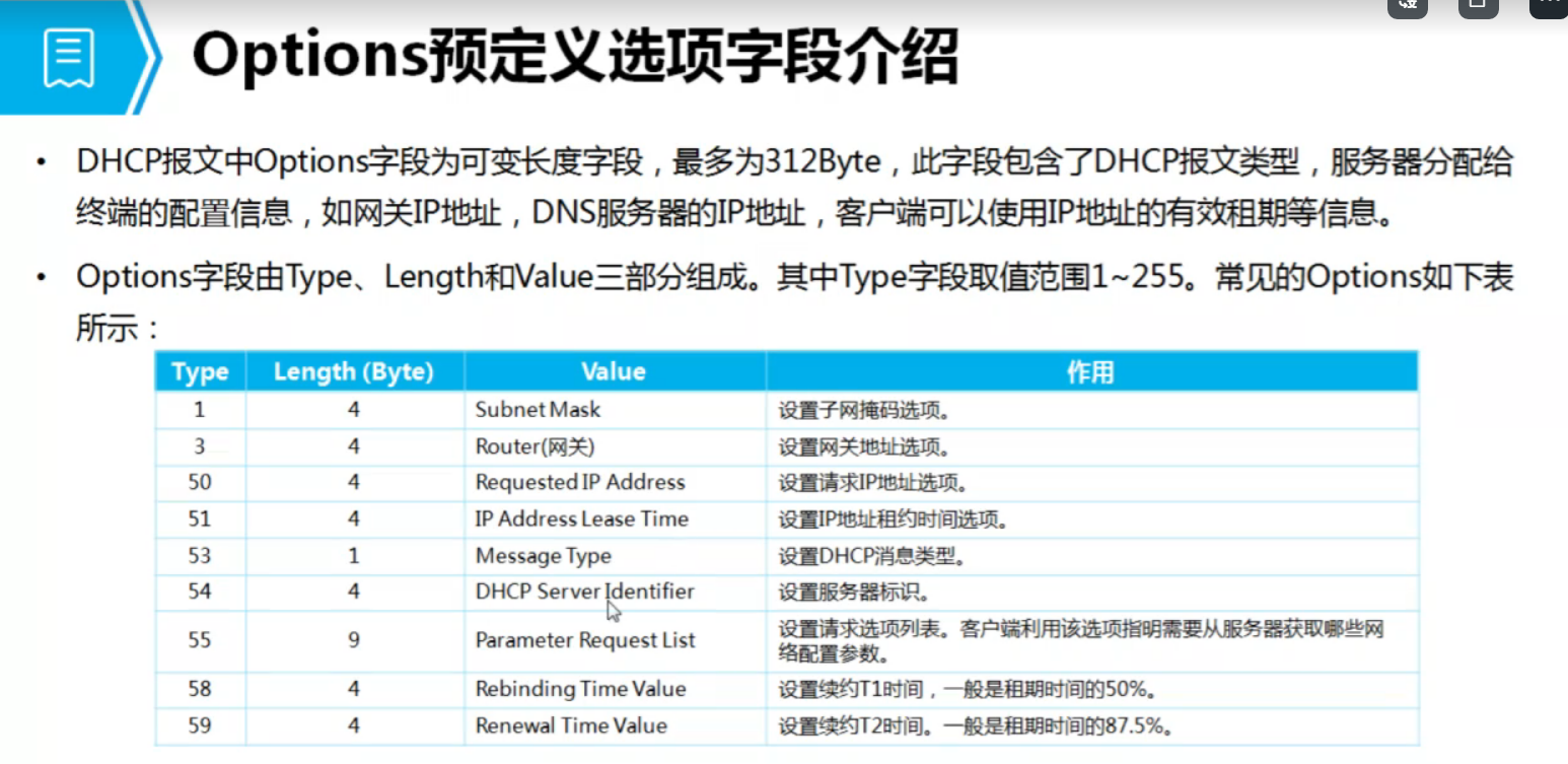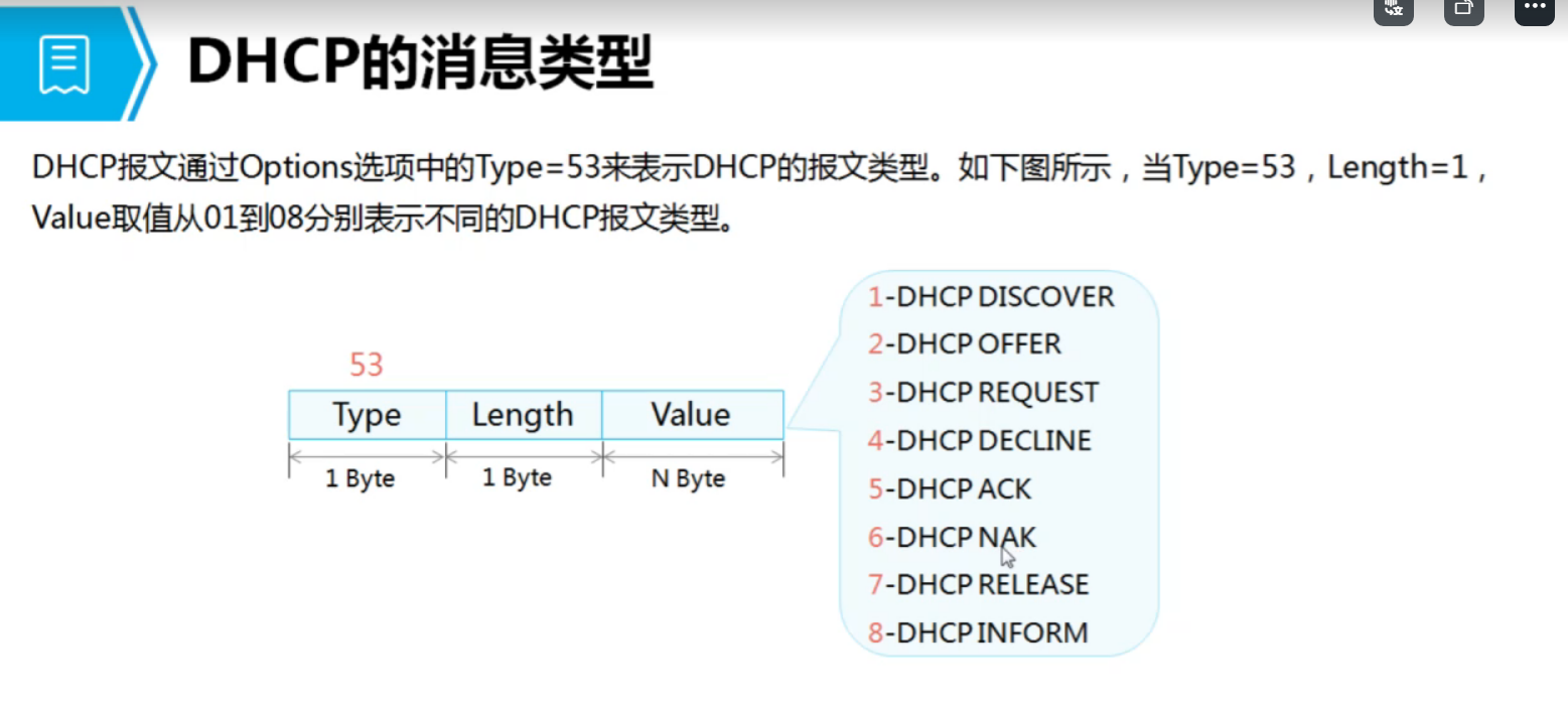 decline:地址冲突 NAK(服务器发给客户端): 拒绝响应 release(客户端发给服务器)释放IP inform:获得更详细的信息