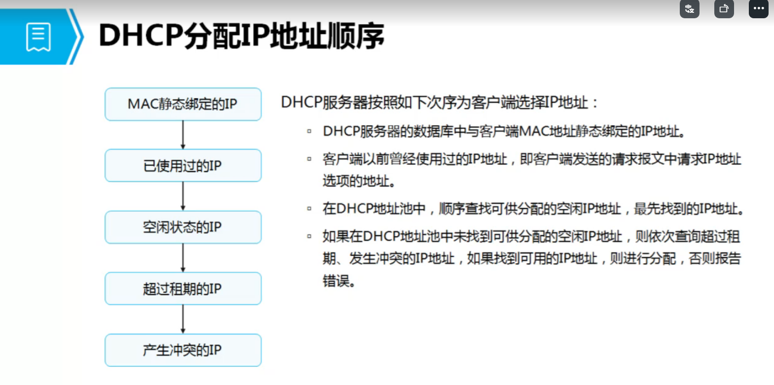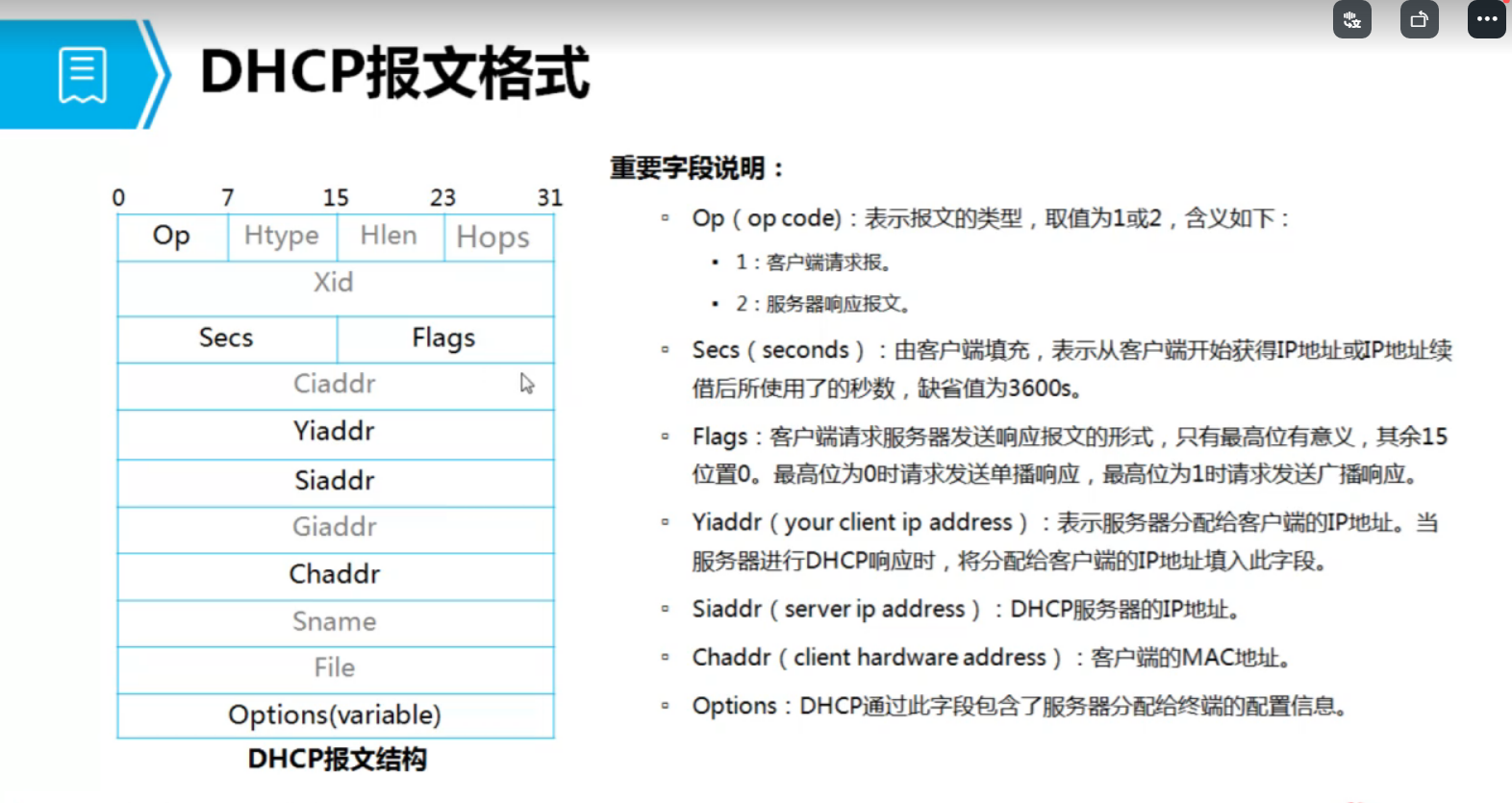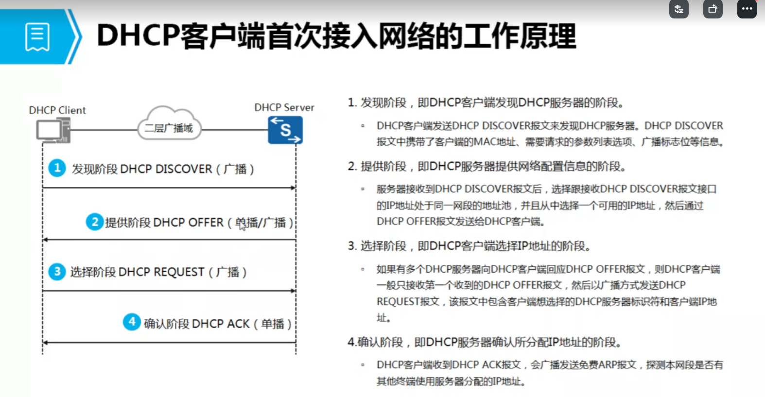 decline:地址冲突 NAK(服务器发给客户端): 拒绝响应 release(客户端发给服务器)释放IP inform:获得更详细的信息
