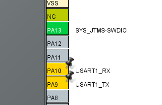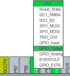 我的开发板是正点原子的精英板,这里选择LED的端口PB5和PD5。串口选择PA9(TX)和PA10(RX),LED灯选择GPIO_Output输出模式。