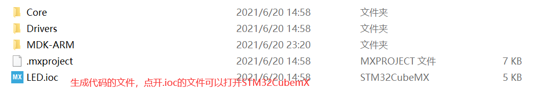 (4)最后打开生成的代码检查看有无出错。最后生成的文件如下所示,MDK的项目在MDK-ARM文件下。