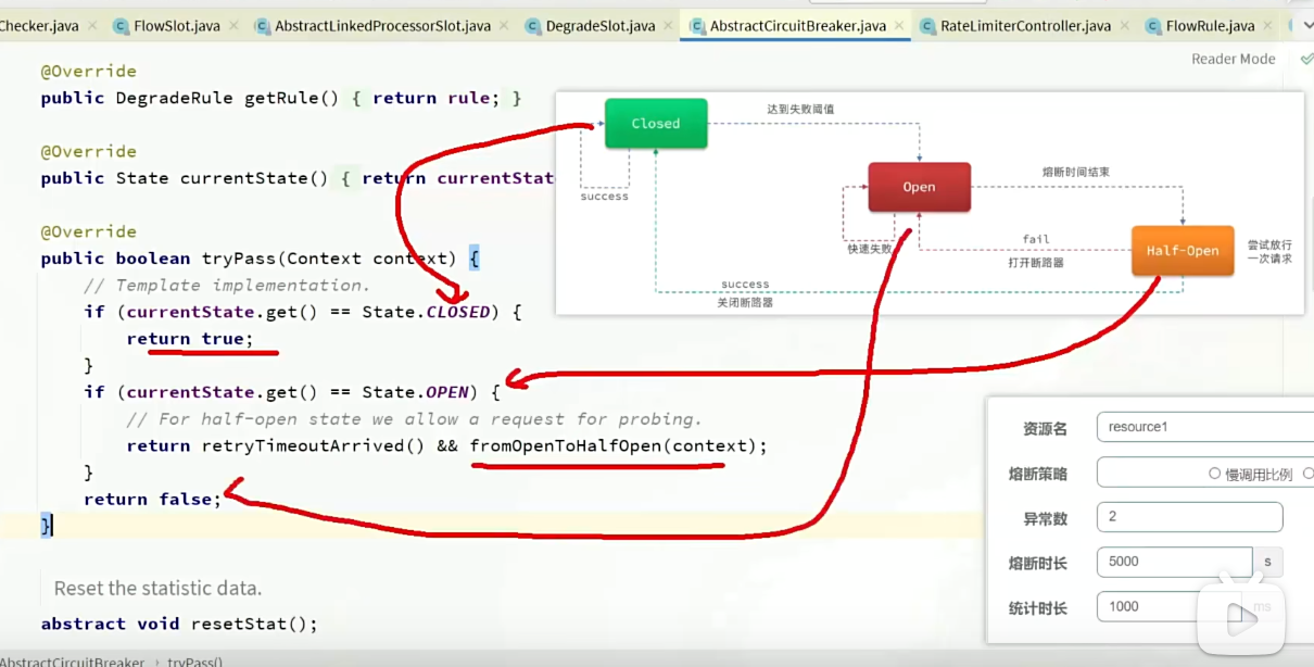 com.alibaba.csp.sentinel.slots.block.degrade.circuitbreaker.AbstractCircuitBreaker#tryPass