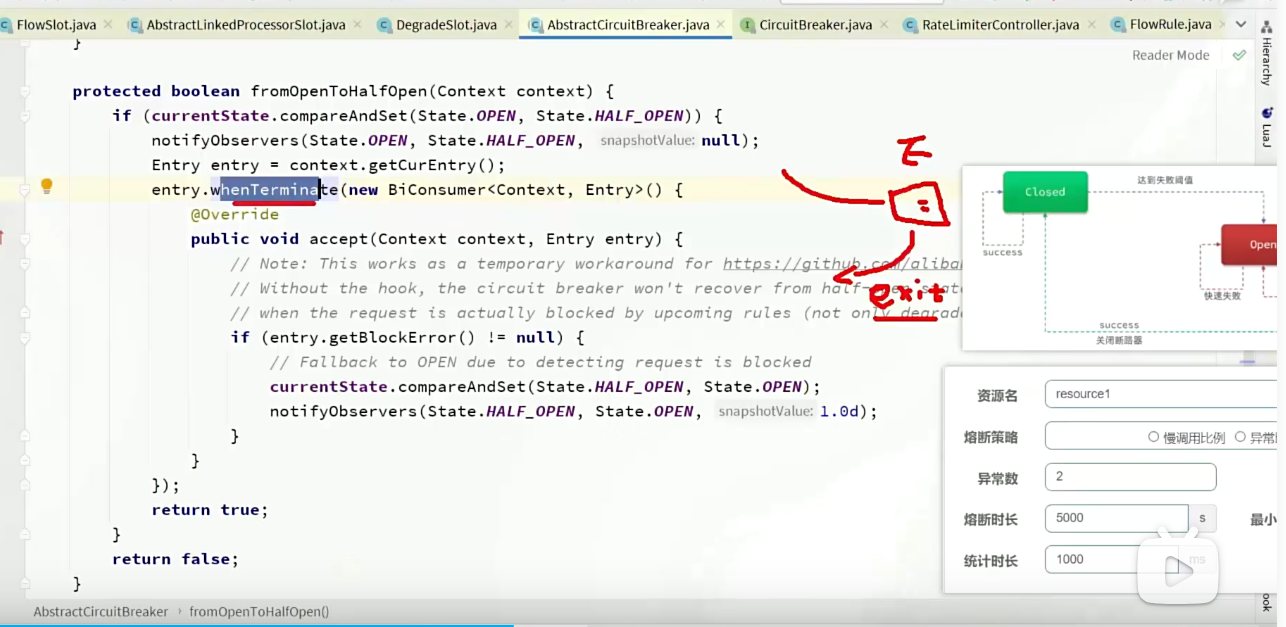 com.alibaba.csp.sentinel.slots.block.degrade.circuitbreaker.AbstractCircuitBreaker#notifyObservers