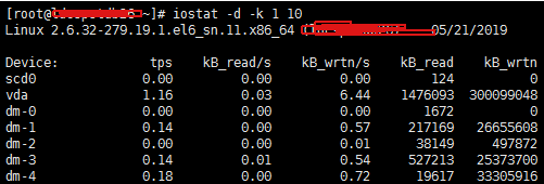 iostat -d -k 1 10 #查看TPS和吞吐量信息