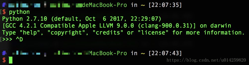 如果要退出Python控制台的话,可以输入命令exit() 然后回车即可,或者直接按键盘 Ctrl-D 也可以直接退出Python控制台。