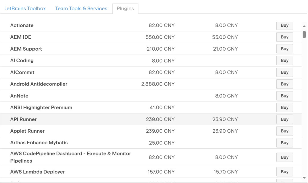 好吧!这些工具都不是最重要!哈哈!其实你只需要一个框AI编程插件即可!把你的测试数据输入,然后告诉AI即可!现在拿我推出的专属付费版全家桶支持的插件列表作为例子!JetBrains全家桶专属付费版激活是自带了130+付费插件和主题的。这是官网上关于插件的价格!