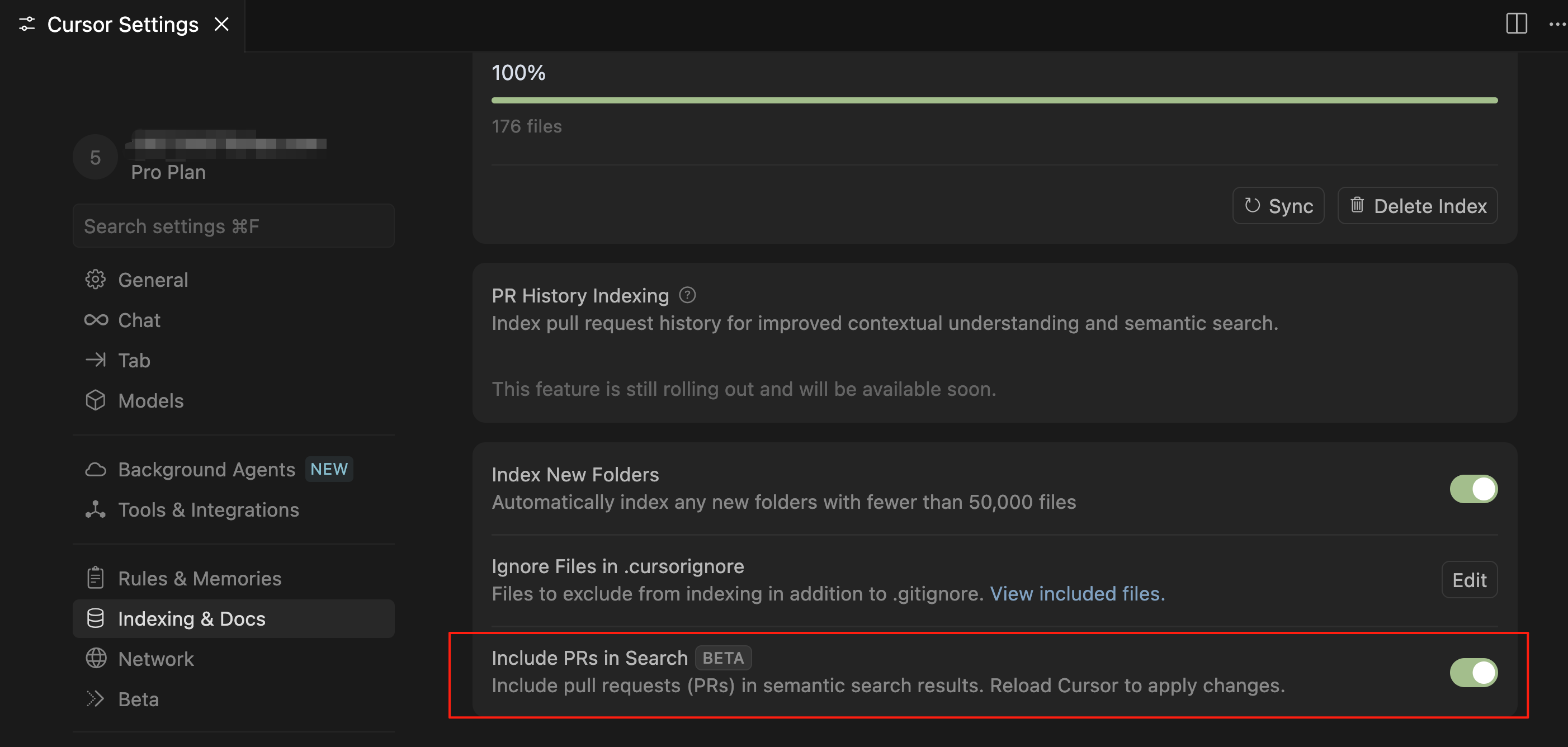 注意,想使用这个功能,需要确保设置中开启了对 PR 的索引: