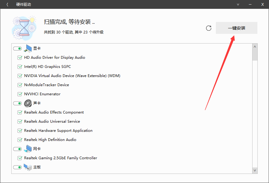 极简操作流程:通过“硬件扫描→一键安装”两步即可完成全驱动部署,大幅降低技术门槛。