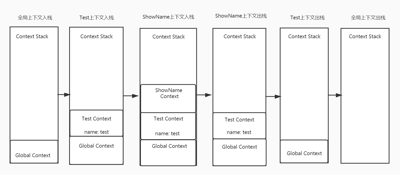在showName作用域的时候,我们能够访问到 name属性,所以看起来,好像context就是我们平时所说的作用域