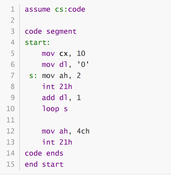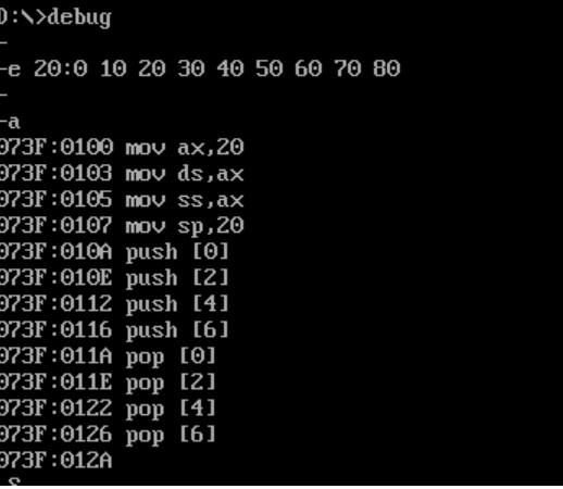 (2) 在debug中调试,使用g命令将程序执行到 loop s 之后、 mov ax, 4c00h 之前,然后,使用u命令