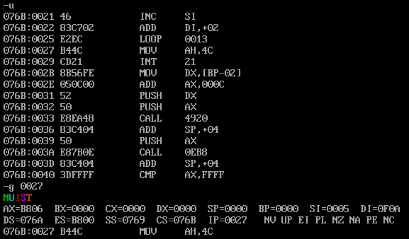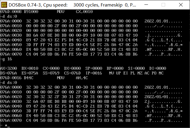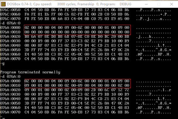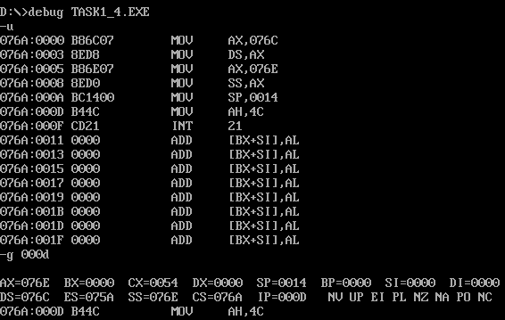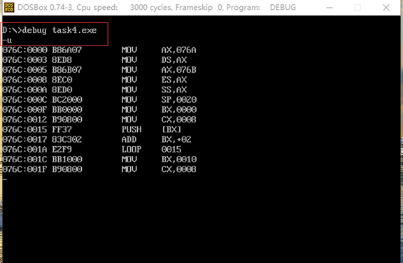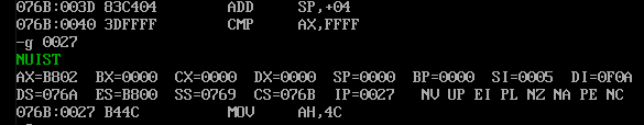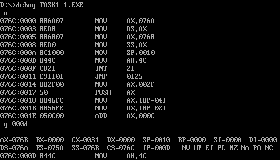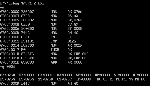 问题1:寄存器(DS) = 076A, 寄存器(SS) = 076B, 寄存器(CS) = 076C