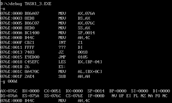 问题1:寄存器(DS) = 076A, 寄存器(SS) = 076C, 寄存器(CS) = 076E