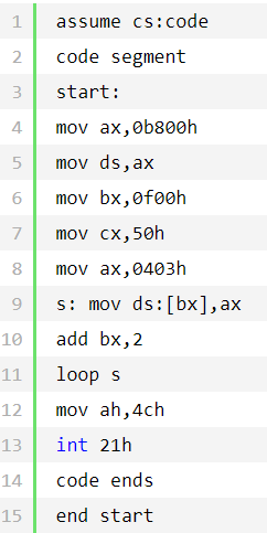 在debug中加载程序,反汇编,执行到line13退出前,用d命令查看data段对应的内存空间,确认每