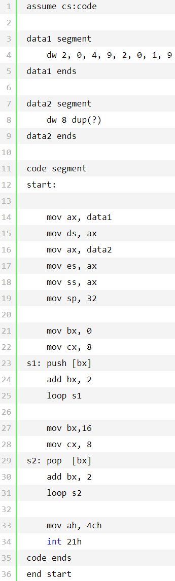 问题2:假设程序加载后,code段的段地址是X,则,data段的段地址是X-2, stack的段地址是X-1