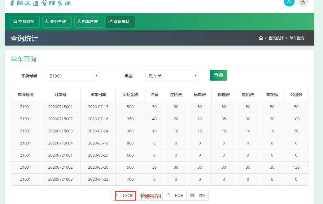 String[] headerName = { "车牌号码","订单号", "出车日期", "实际金额","油费","过桥费", "停车费", "停车费","轮胎费","车补贴", "公里数"};