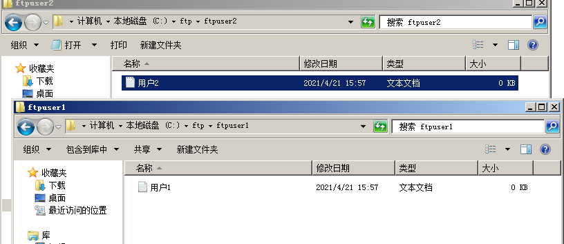 2.在FTP服务器根目录中添加FTP的目录,与用户目录,并在各个目录中做好标记