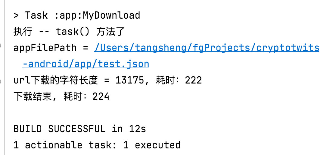 apply plugin: 'com.plugin.MyPlugin' //app 的build.gradle文件中配置下载路径 downloadInfo { url "https://www.wanandroid.com/article/list/0/json" }