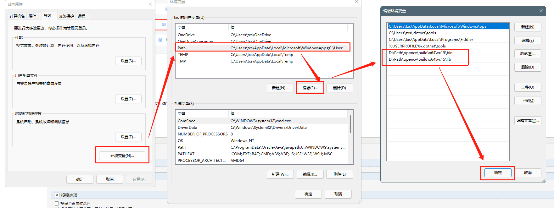 (3)配置OpenCV环境变量。