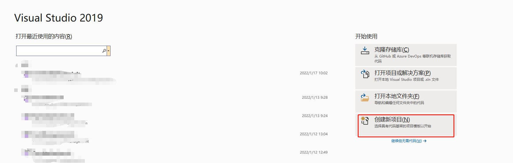1)打开vs2019,新建C++