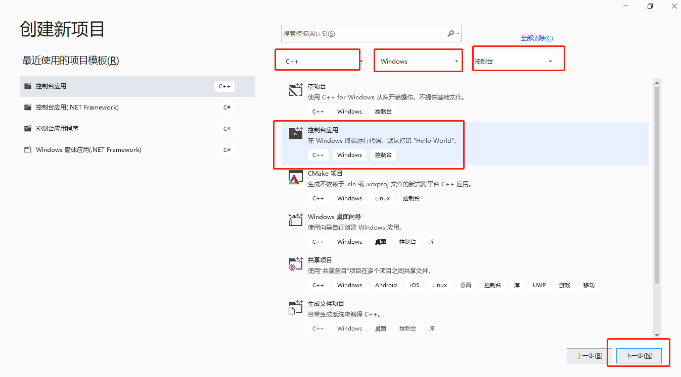 2)新建C++的控制台应用