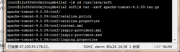 解压tomcat: tar -zxvf apache-tomcat-9.0.59.tar.gz