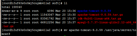 移动并重命名tomcat: mv apache-tomcat-9.0.59 /usr/java/server/tomcat9