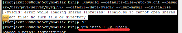 如果出现libaio报错,则安装libaio: yum install -y libaio