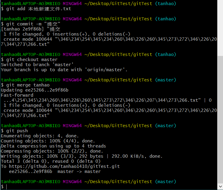 5.在修改完成后,需要和团队成员共享代码时,可以将代码push到远程仓库。