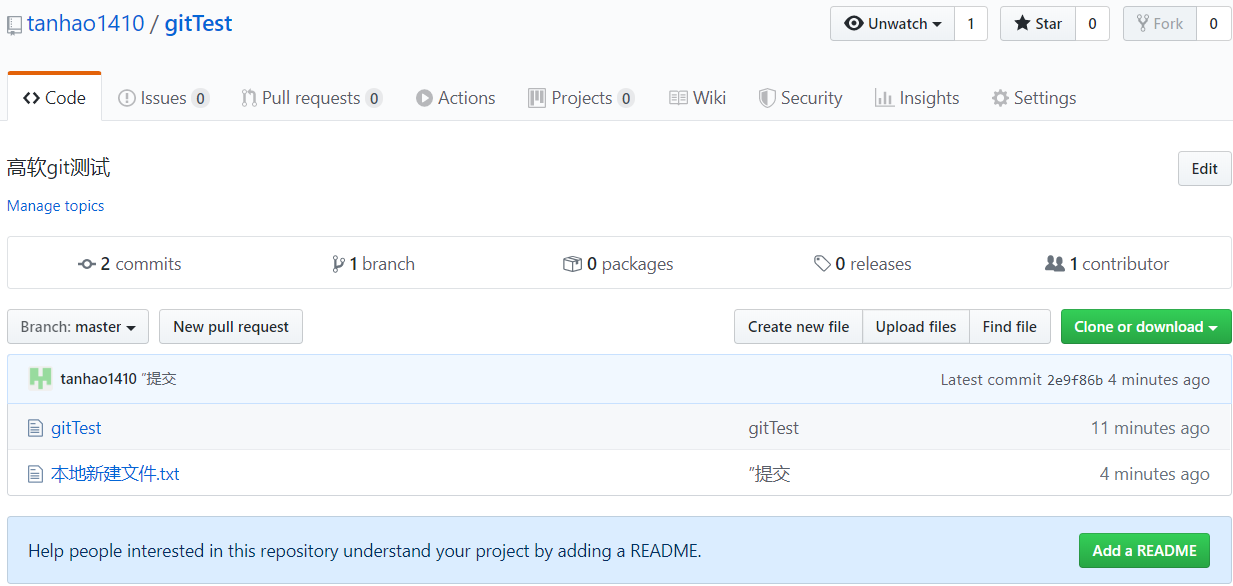 4.远程同步,一番操作可以看到远程仓库已经有了本地的文件。